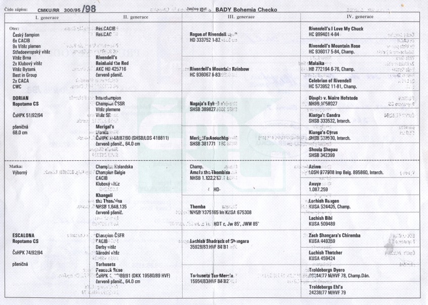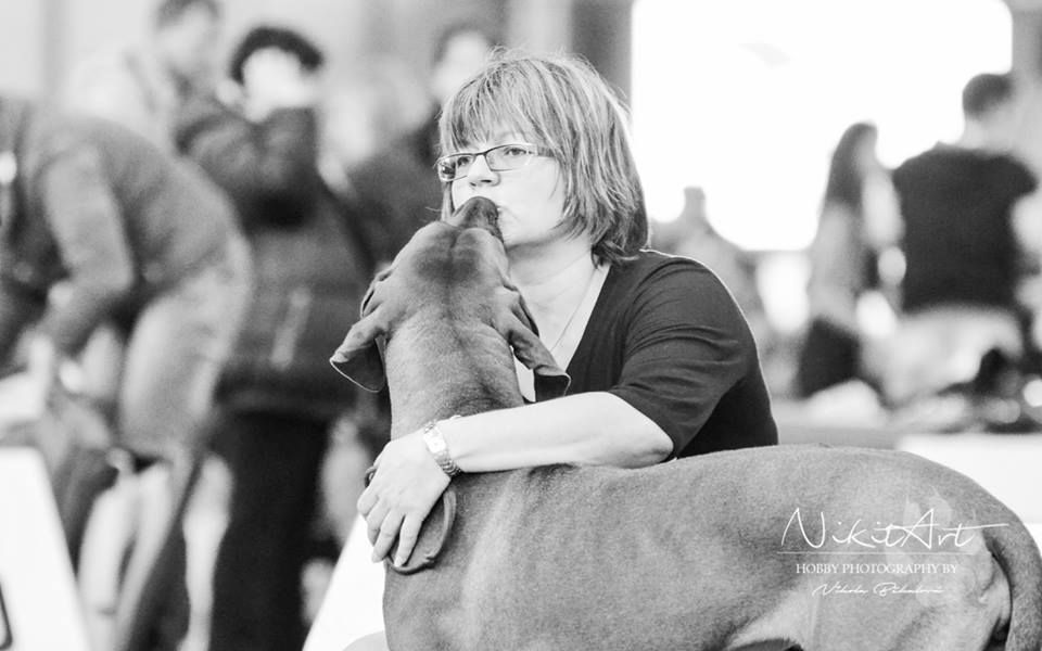 nesnáší výstavy a miluje volnost. Klubový CAC, CAJC, 5x r.CAC, 2x kr. vítěz, 5x vítěz třídy, 10x V1, 7x V2, 3x V3, 5x V, 2x VN, zkouška BZ II. cena - 72 bodů, DKK O/O